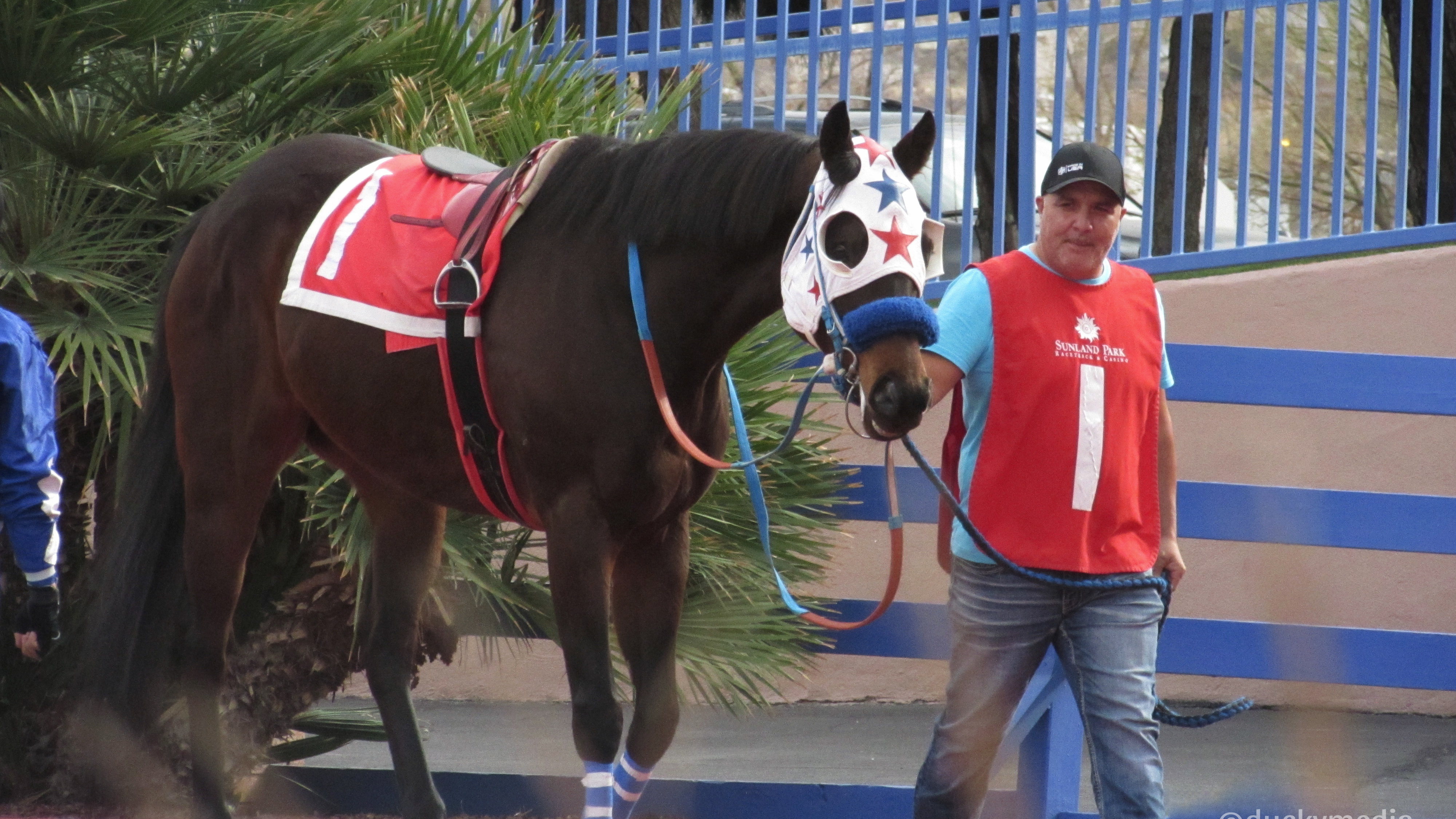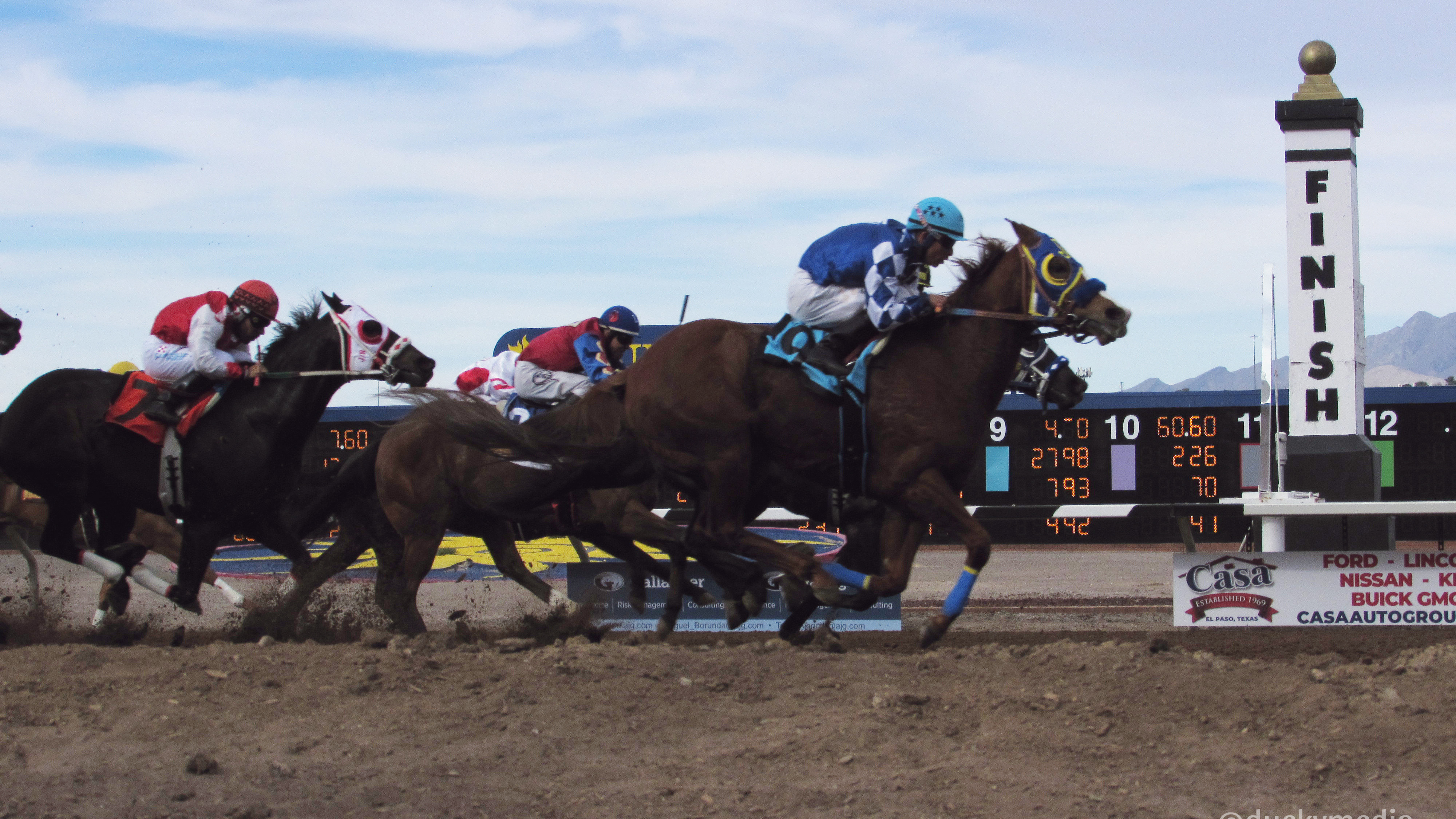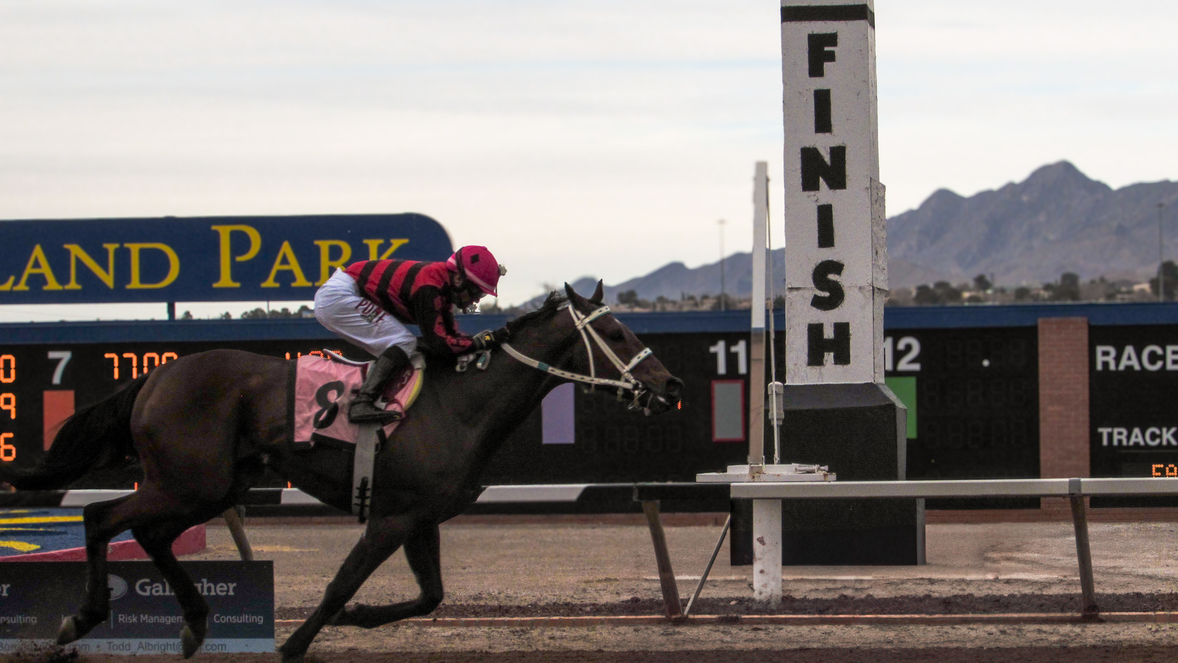 Winning horse approaching the line at the Sunland Park Racetrack 02/23/24
