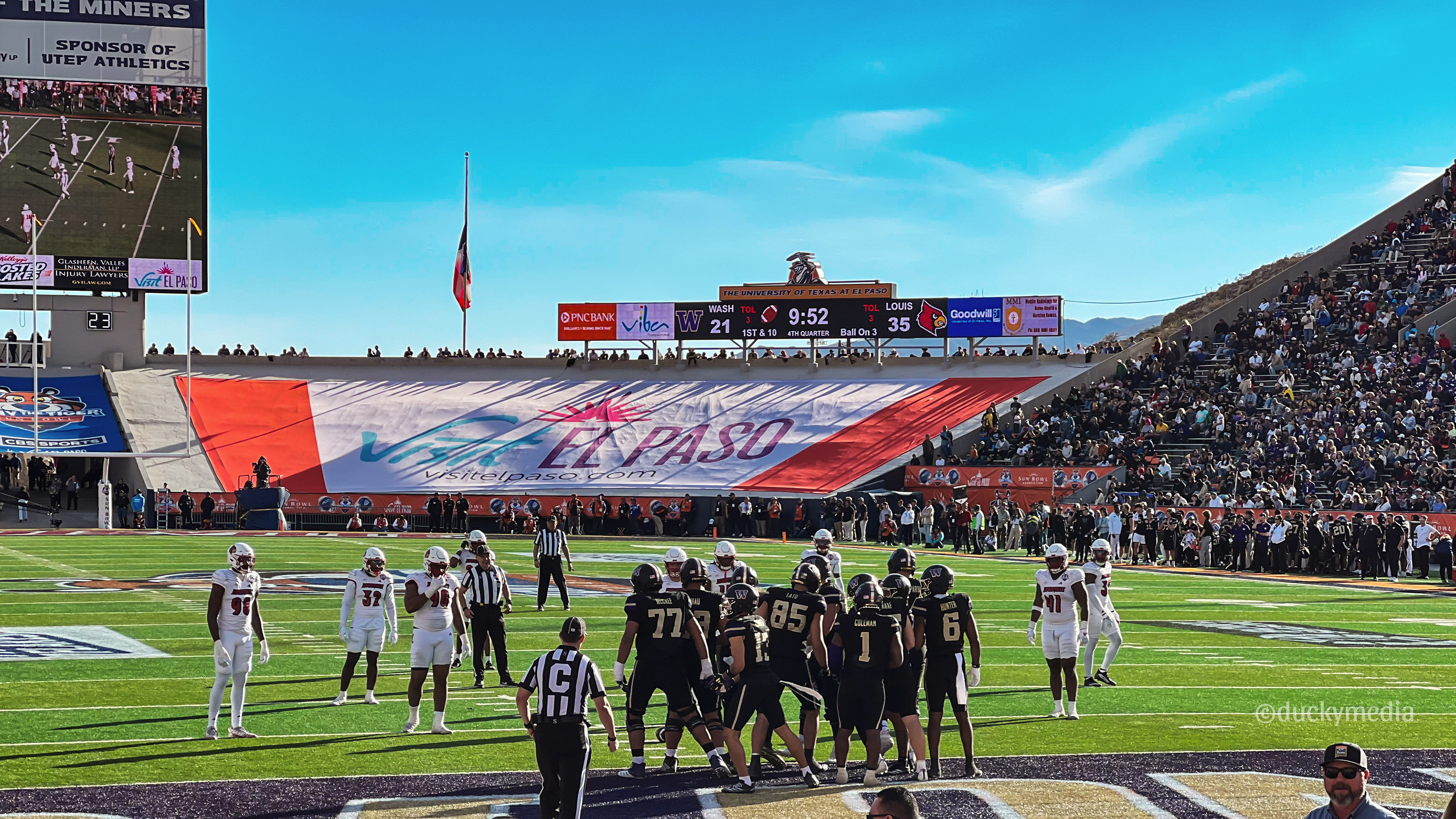 Washington Huskies offense breaking the huddle at the Tony The Tiger Sun Bowl, 12/31/24.